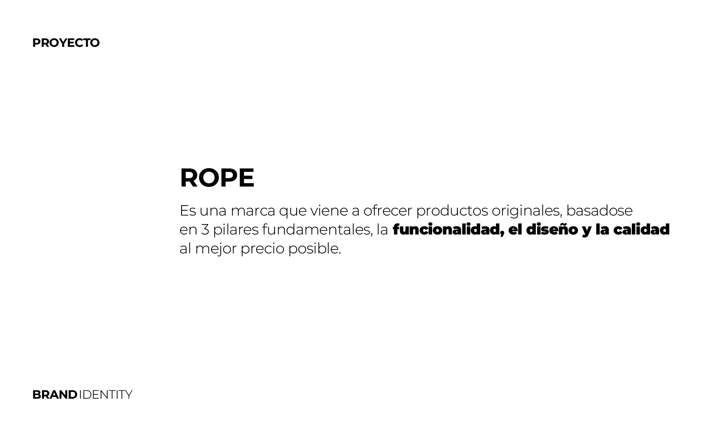 Fer y Jei acudieron a mi para proponerme trabajar la identidad de marca de ROPE, una marca amigable que ofrece productos originales basandos en 3 pilares fundamentales, la funcionalidad, el diseño y la calidad, al mejor precios posible.
